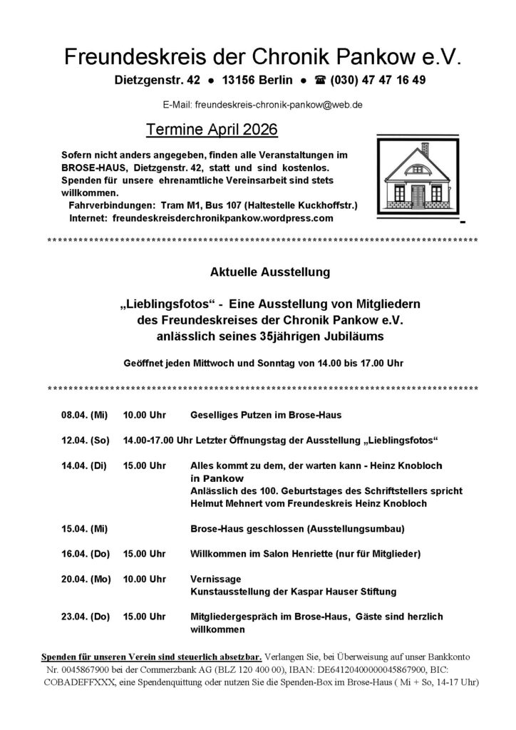 14.04.2026: 17:00 Uhr an der Platanenstraße 24, 13156 Berlin (Straßenrundgang)