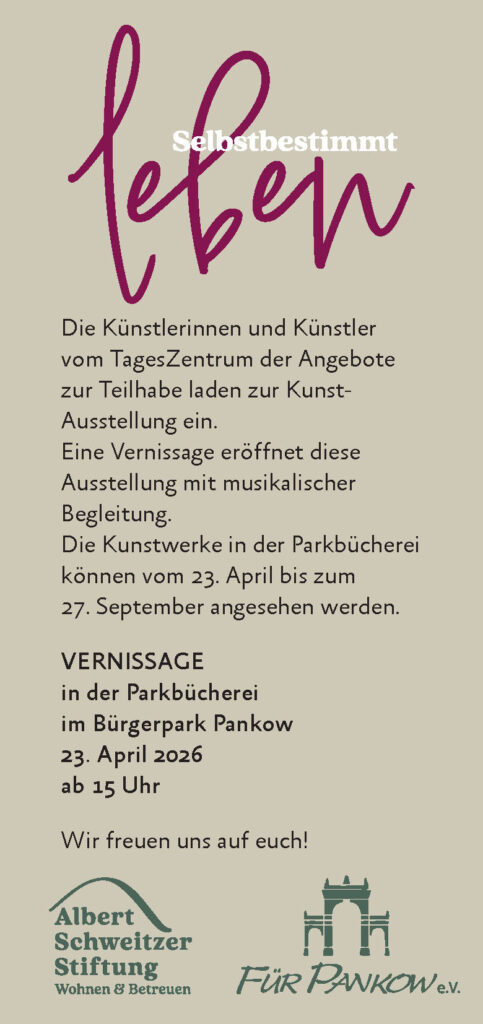 - Die Park-Bücherei im Bürgerpark Pankow ist von April/Mai bis Oktober/November geöffnet, Dienstag – Sonntag, jeweils 12 – 18 Uhr, bei gutem Wetter! Die Bibliothek wird von Ehrenamtlichen des Verein FÜR PANKOW e.V. betrieben und hat viele hochwertige Bücher im Bestand, z. B. Bildbände, Krimis und Kinderbücher. Besucher*innen leihen sich gegen Pfand (2 €, es werden keine Daten erhoben) Bücher aus, setzen sich in den Park und lesen.